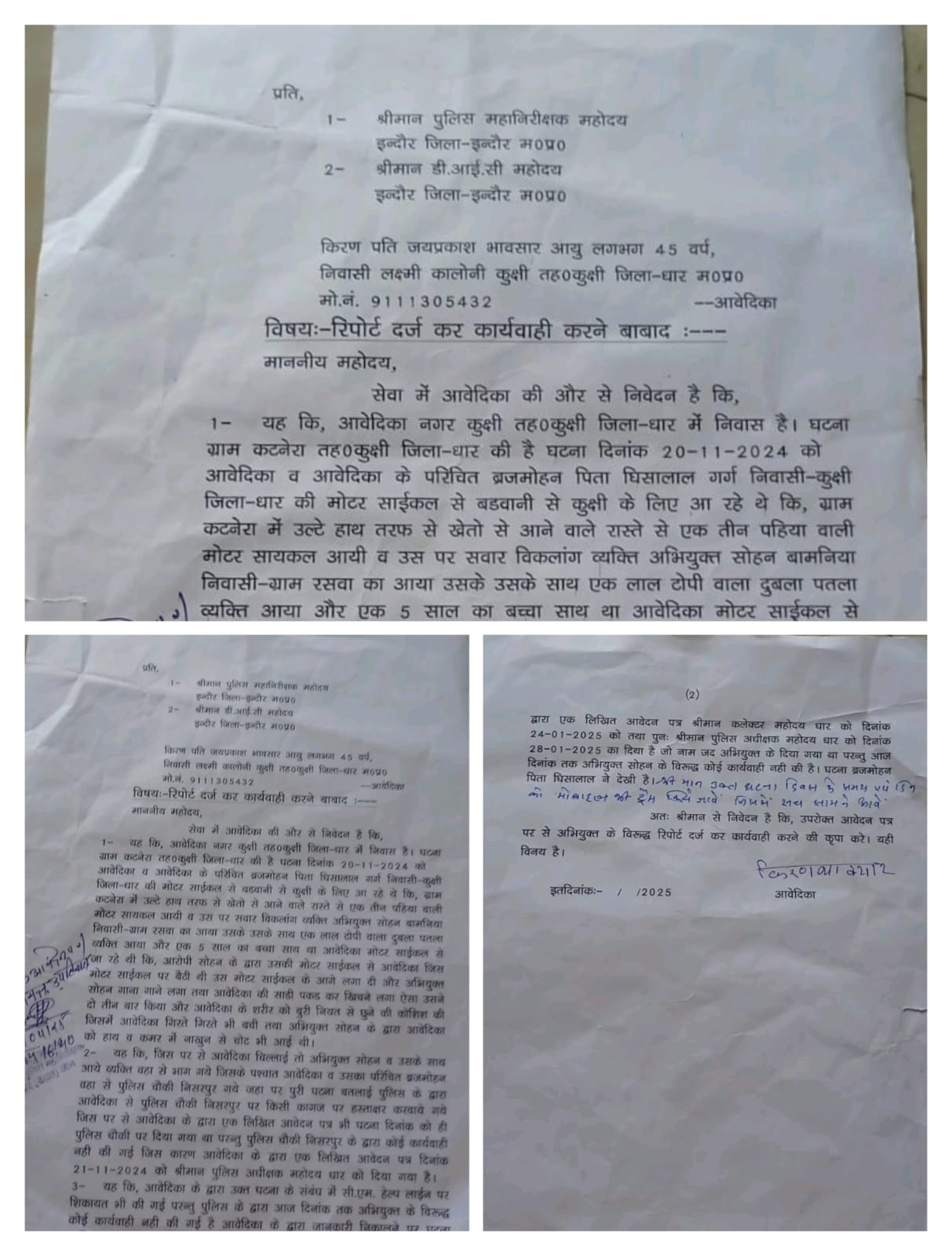 पुलिस चौकी से न्याय न मिलने के बाद, किरण भावसार ने जिले के बड़े अधिकारियों से भी संपर्क किया। उन्होंने अपनी शिकायत दर्ज कराई: