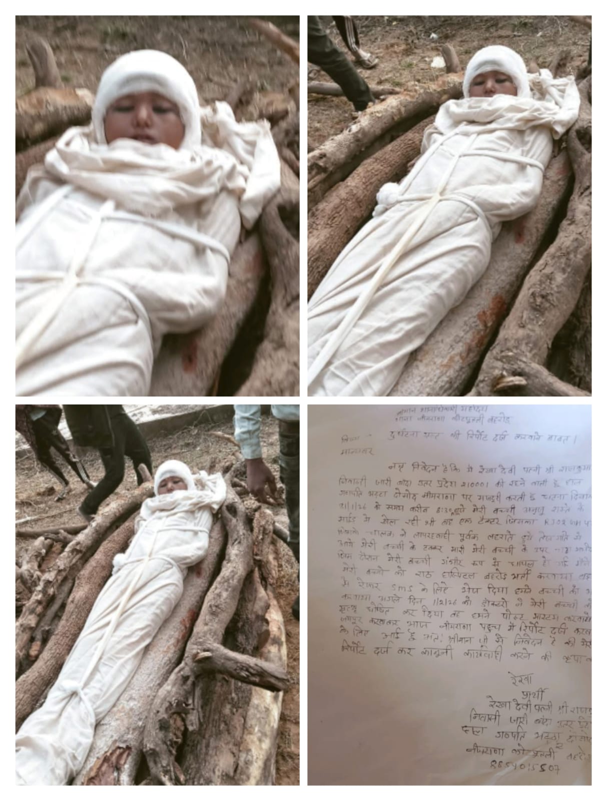पोस्टमार्टम के बाद परिजन भाना नीमराणा थाना पहुंचे और रिपोर्ट दर्ज कर कानूनी कार्रवाई की मांग की। रेखा देवी का आरोप है कि ट्रैक्टर चालक हनुमान नामक व्यक्ति था। साथ ही उन्होंने भट्ठा मालिक पर भी दबाव और धमकी देने का आरोप लगाया है। परिवार का कहना है कि उन्हें कहा जा रहा है, “हमारे बिना तुम कुछ नहीं कर पाओगे।” इस कारण वे खुद को असहाय महसूस कर रहे हैं।