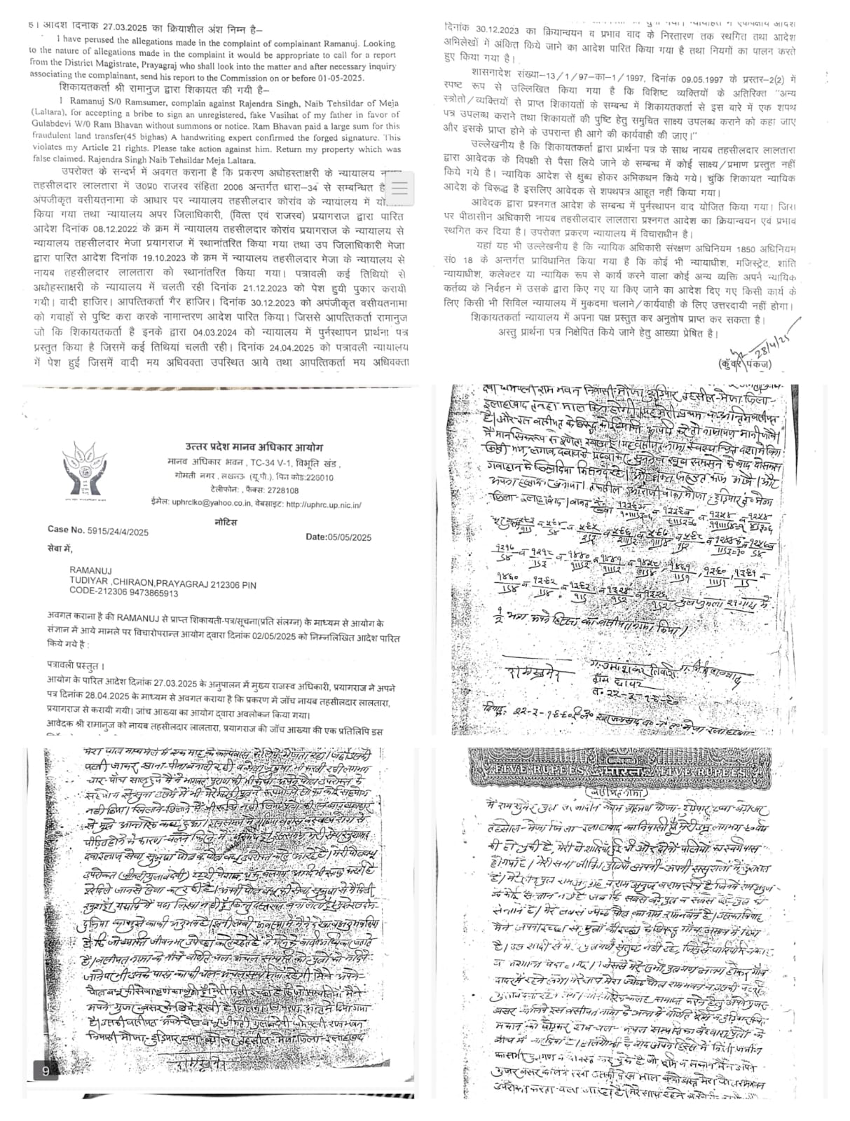 केस नंबर 5915/24/4/2025 में आयोग ने मामले की गंभीरता को देखते हुए जिला अधिकारी प्रयागराज से रिपोर्ट तलब की।