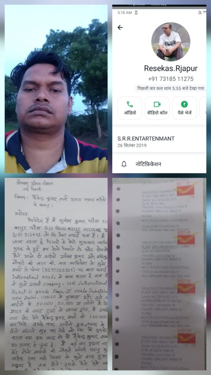 राजधानी दिल्ली में एक बार फिर से नौकरी दिलाने के नाम पर ठगी का मामला सामने आया है। उत्तर प्रदेश के इलाहाबाद (प्रयागराज) जिले के फूलपुर निवासी सुनील कुमार पटेल ने ओखला पुलिस स्टेशन में एक शिकायत दर्ज कराते हुए आरोप लगाया है कि दैवेन्द्र कुमार शर्मा नामक व्यक्ति ने उनके साथ करीब ₹2.20 लाख की ठगी की है।