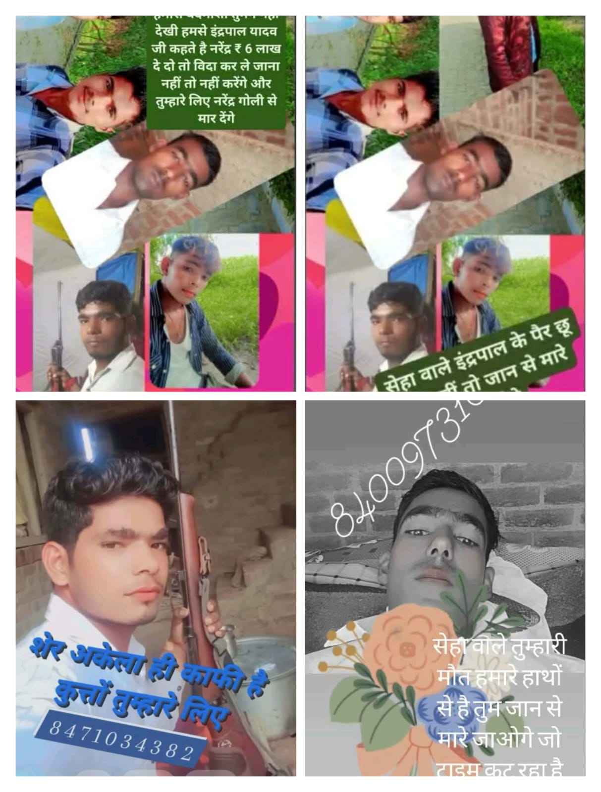 मामले ने और गंभीर मोड़ तब लिया जब नरेंद्र के अनुसार उनका साला इंद्रपाल यादव फेसबुक पर “Indrapal Yadav IPS” नाम से फर्जी आईडी चलाने लगा। इस आईडी से वह हथियार के साथ स्टोरी डालकर खुलेआम 6 लाख रुपये की मांग कर रहा है और लिख रहा है कि रकम मिलने पर ही उसकी बहन को विदा किया जाएगा, अन्यथा जान से मार दिया जाएगा। पीड़ित का कहना है कि इन धमकियों के स्क्रीनशॉट और अन्य साक्ष्य भी उसके पास मौजूद हैं।