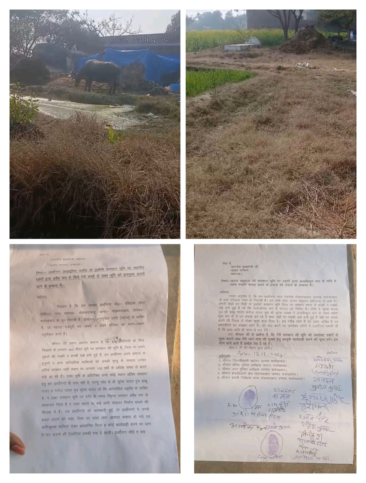 जाटव समाज के लोगों ने इस मामले को लेकर थाना मोहम्मदाबाद, पुलिस अधीक्षक फर्रुखाबाद और जिलाधिकारी को लिखित शिकायत दी, लेकिन अब तक कोई ठोस कार्रवाई नहीं हुई। इससे समाज के लोगों में भारी रोष है। पीड़ित परिवारों का कहना है कि अगर जल्द ही शमशान भूमि को मुक्त नहीं कराया गया तो वे बड़ा आंदोलन करने को मजबूर होंगे।