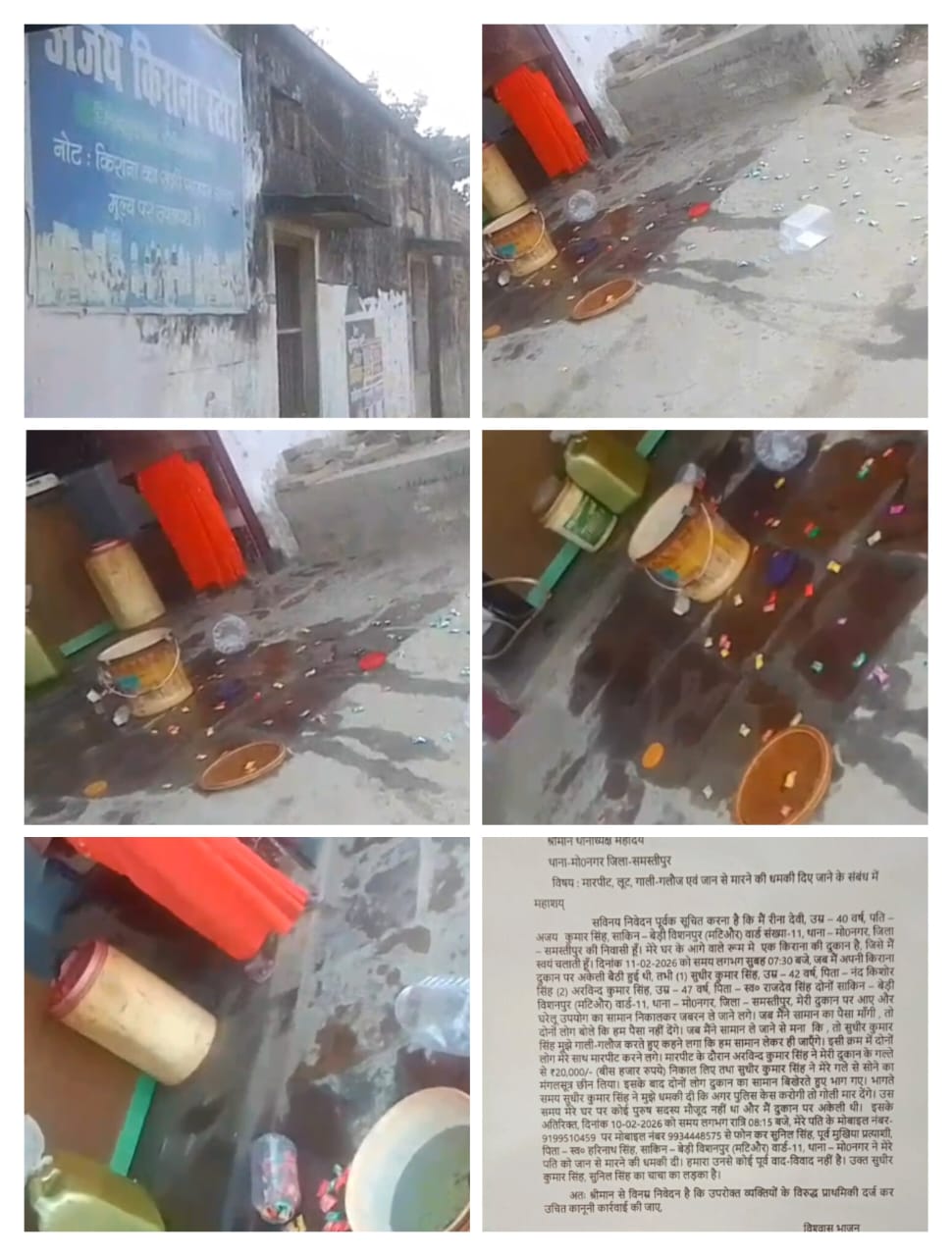 अजय जी ने यहां भी बताया है कि सुधीर सिंह के चाचा का लड़का जिसका नाम सुनील है उसने कल रात में फोन पर धमकी दी ( 9934448575) अजय जी को जान से मारने की धमकी दी और सुबह उनकी दुकान पर तोड़फोड़ हो गई घटना के बाद इलाके में दहशत का माहौल है। पीड़िता ने पुलिस प्रशासन से आरोपियों के खिलाफ प्राथमिकी दर्ज कर कड़ी कानूनी कार्रवाई करने की मांग की है। वहीं स्थानीय लोगों का कहना है कि यदि समय रहते कार्रवाई नहीं हुई तो ऐसी घटनाएं दोबारा हो सकती हैं। फिलहाल पुलिस मामले की जांच में जुटी हुई है और आवेदन के आधार पर आगे की कार्रवाई की बात कही जा रही है।