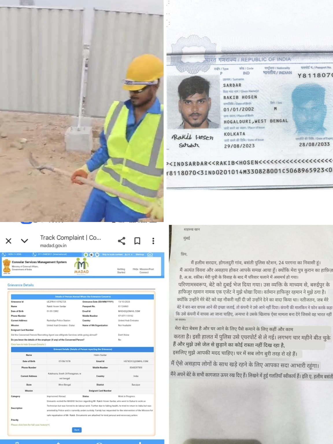 पीड़ित हलीम सरदार ने बताया कि उनका पुत्र अ.स. रकीब कुरान का हाफ़िज़ है। परिवार की आर्थिक स्थिति बेहद कमजोर होने के कारण बेटी की शादी के बाद घर चलाना मुश्किल हो गया था। इसी मजबूरी में उन्होंने बेटे को नौकरी के लिए दुबई भेजने का फैसला किया।