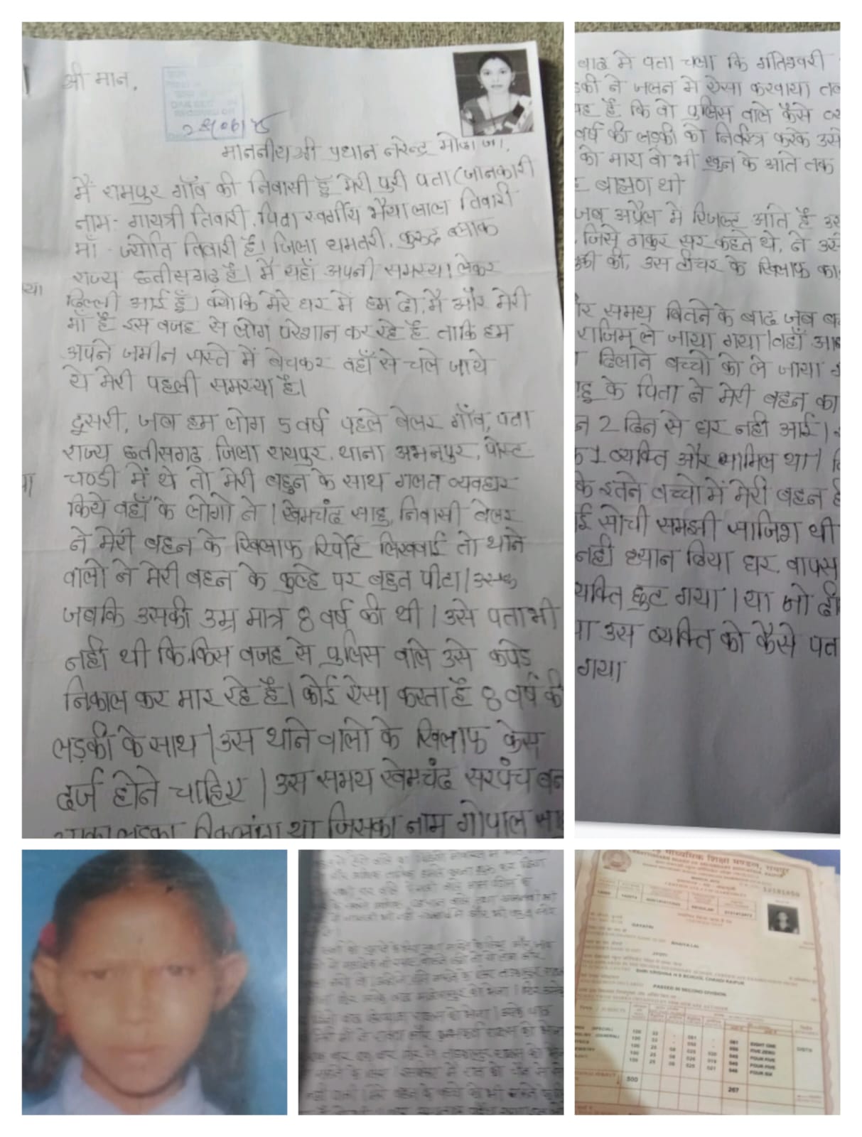 गायत्री तिवारी ने बताया कि कुछ साल पहले जब वे रायपुर ज़िले के बेलर गाँव में रह रही थीं, तब वहाँ उनकी छोटी बहन के साथ गंभीर उत्पीड़न हुआ। उस समय मात्र 8 साल की बच्ची के साथ पुलिस द्वारा दुर्व्यवहार किया गया, यहाँ तक कि एक महिला पुलिसकर्मी ने बच्ची के कपड़े उतरवाकर मारपीट की। गायत्री ने मांग की है कि इस अमानवीय कृत्य में शामिल पुलिस कर्मियों पर सख्त कार्यवाही की जाए।