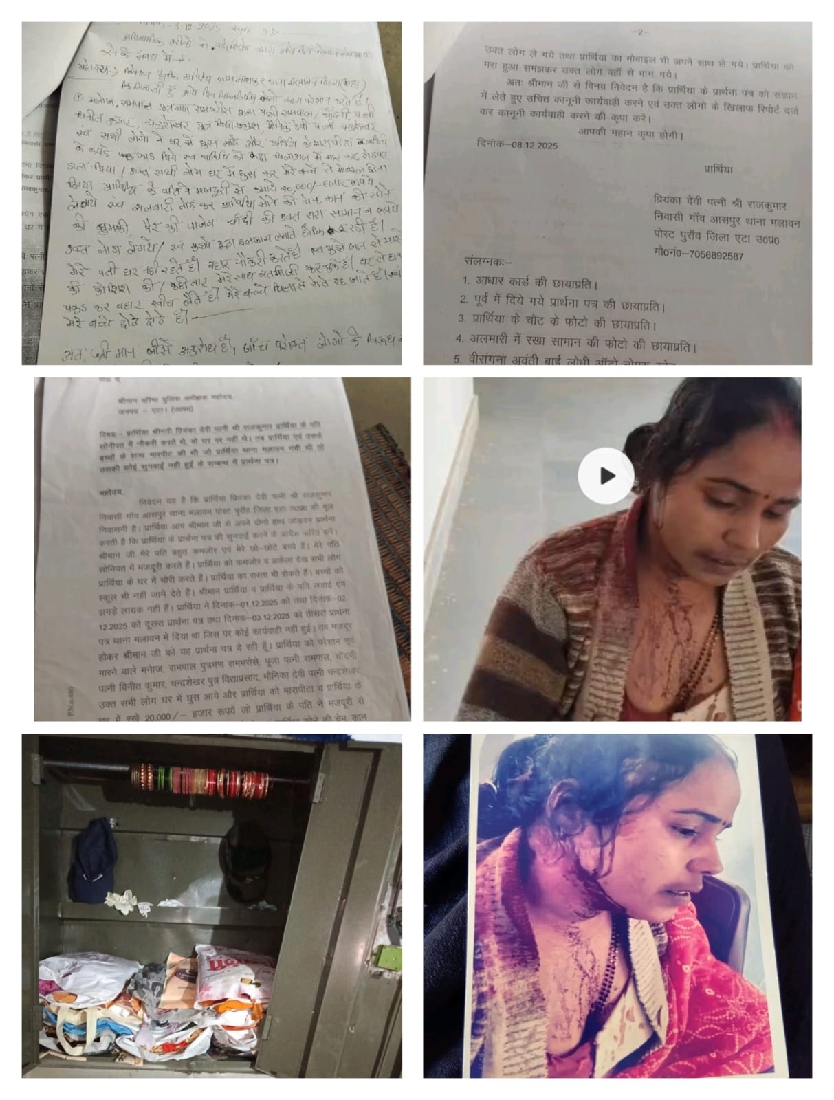 प्रियंका देवी के अनुसार, 1 दिसंबर 2025 से 3 दिसंबर 2025 के बीच उन्होंने थाना मलावन में लगातार तीन प्रार्थना पत्र दिए, लेकिन कोई सुनवाई नहीं हुई। इसके बाद आरोपियों के हौसले और बढ़ गए। पीड़िता का आरोप है कि मनोज, रामपाल पुत्रगण रामभरोसे, पूजा पत्नी रामपाल, चांदनी पत्नी विनीत कुमार, चंद्रशेखर पुत्र विद्याप्रसाद और मौनिका देवी पत्नी चंद्रशेखर ने उनके घर में घुसकर उनके साथ बेरहमी से मारपीट की।