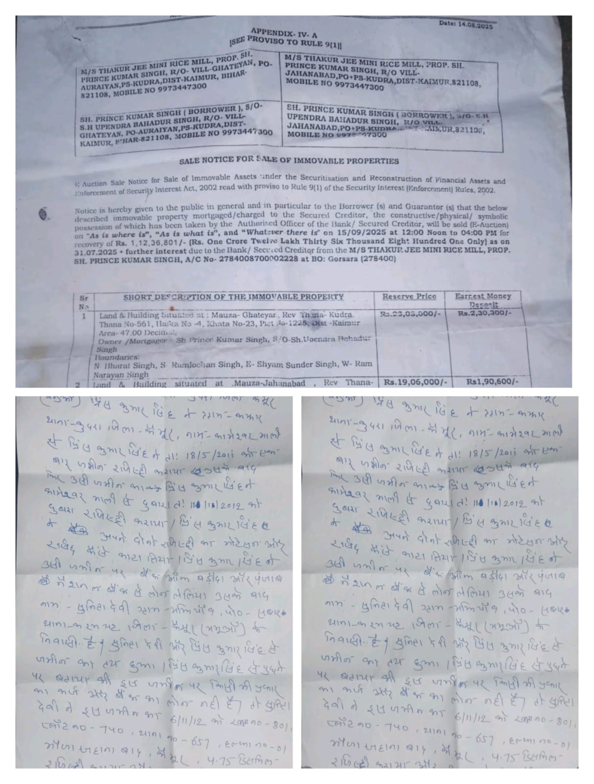 पीड़ित परिवार ने कहां की जब पर लोन था तो रसीद बात की कटी अब 15 सितंबर को बैंक इस जमीन की नीलामी कर रहा है। जो सरासर धोखेबाजी है। इस मामले मैं सुनीता देवी ने सिविल कोर्ट भबुवा मे केस चला हुआ है।