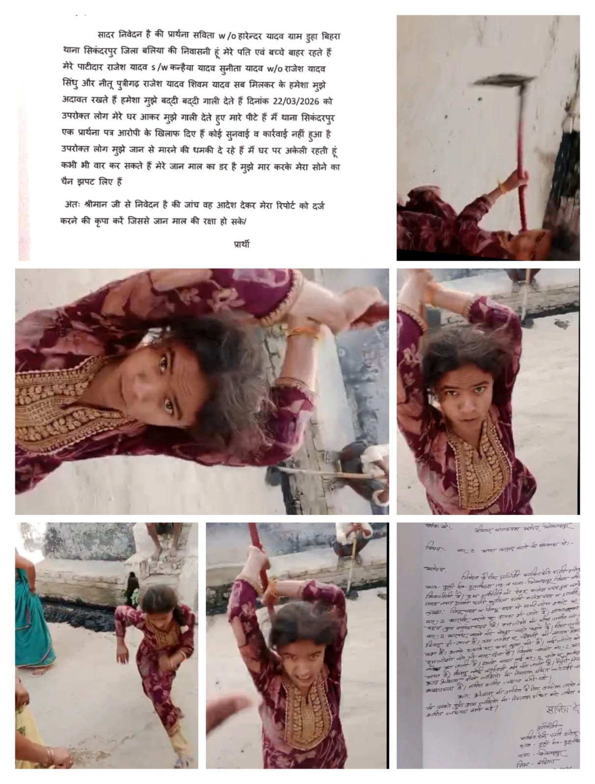 सविता देवी ने बताया कि घटना के तुरंत बाद उन्होंने सिकंदरपुर थाने में लिखित शिकायत दी थी, लेकिन अब तक न तो कोई सुनवाई हुई और न ही आरोपियों के खिलाफ कोई कार्रवाई की गई। इससे पीड़िता और उनका परिवार दहशत में है। महिला का कहना है कि आरोपी खुलेआम धमकी दे रहे हैं कि मौका मिलने पर उन्हें जान से मार देंगे। चूंकि वह घर में अकेली रहती हैं, इसलिए उन्हें हर समय किसी अनहोनी का डर सताता रहता है।