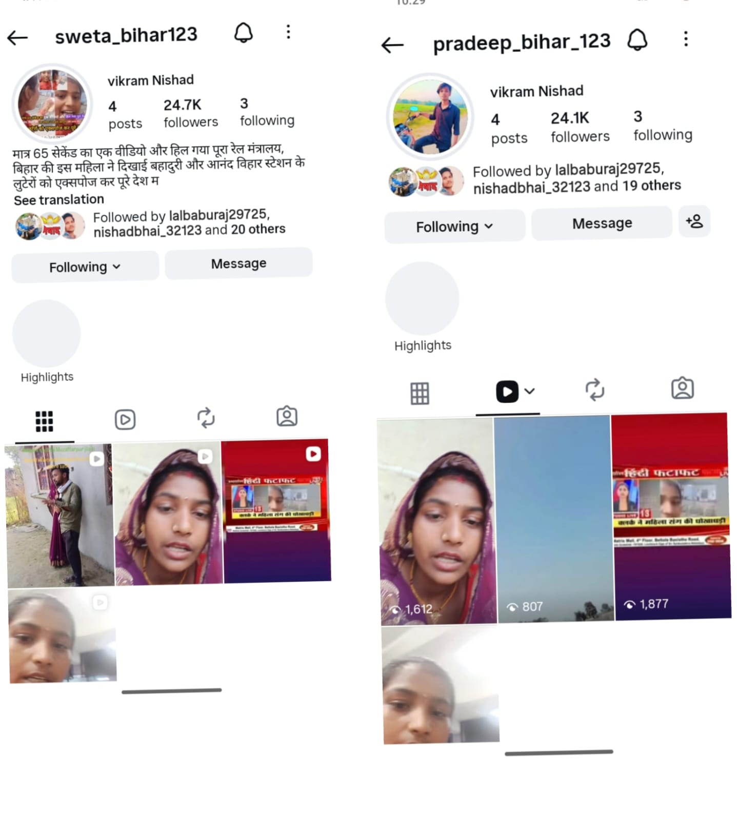 रंजीत साहनी के अनुसार, वह और महेशसता निवासी विक्रम निषाद पिछले करीब दो वर्षों से साथ मिलकर वीडियो बनाते थे। दोनों एक ही इंस्टाग्राम आईडी “PK 123” नाम से संचालित करते थे और संयुक्त रूप से वीडियो अपलोड करते थे। रंजीत का दावा है कि इस आईडी को बढ़ाने में उन्होंने काफी मेहनत की और नियमित रूप से कंटेंट तैयार किया।