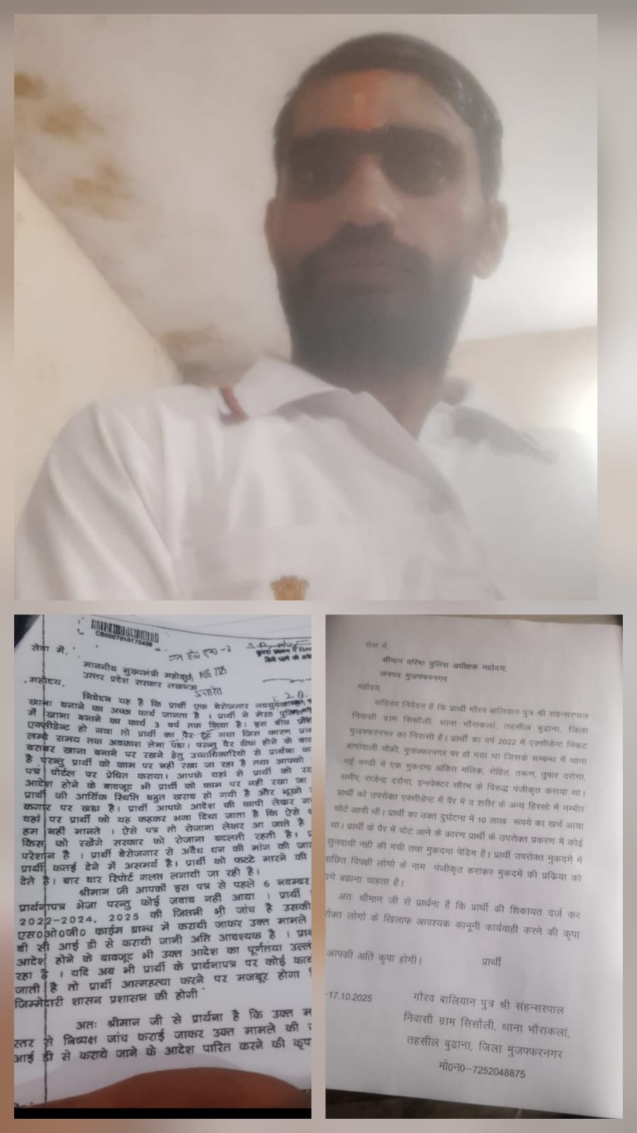 गौरव ने बताया कि वर्ष 2022 में बागोवाली चौकी के पास उनका गंभीर एक्सीडेंट हुआ, जिसमें उनके पैर में गंभीर चोटें आईं और शरीर के कई हिस्से जख्मी हो गए। उन्होंने इस संबंध में थाना नई मंडी में मुकदमा दर्ज कराया था, जिसमें अंकित मलिक, रोहित, तरुण, तुषार दरोगा, समीर, राजेंद्र दरोगा और इंस्पेक्टर सौरभ समेत कई लोगों के नाम शामिल हैं।