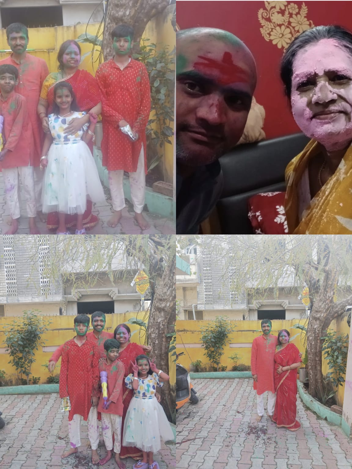 होली के मौके पर परिवार के सदस्यों ने घर के आंगन में एकत्र होकर रंगों की खुशियां बांटीं। बच्चों के चेहरे पर गुलाल और रंगों की चमक साफ नजर आ रही थी, जबकि बड़े भी पूरे उत्साह के साथ इस पर्व में शामिल हुए। पारंपरिक परिधान में सजे परिवार के लोग एक साथ खड़े होकर तस्वीरें खिंचवाते नजर आए, जिससे त्योहार का उत्साह और भी बढ़ गया। बच्चों ने पिचकारी और रंगों के साथ खूब मस्ती की, वहीं बड़ों ने आशीर्वाद और शुभकामनाओं के साथ माहौल को और भी खुशनुमा बना दिया।