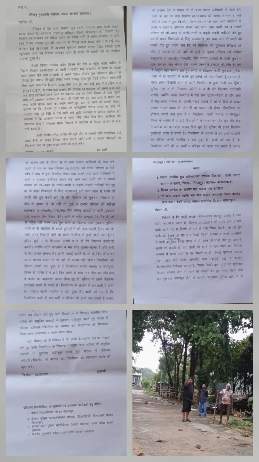 जनपद मीरजापुर के लालगंज थाना क्षेत्र के ग्राम देवरी उत्तर निवासी शमशेर पुत्र लक्ष्मी नारायण ने मुख्यमंत्री योगी आदित्यनाथ, डीआईजी विन्ध्याचल मंडल, पुलिस अधीक्षक और जिलाधिकारी मीरजापुर से निष्पक्ष जांच व सुरक्षा की मांग की है।